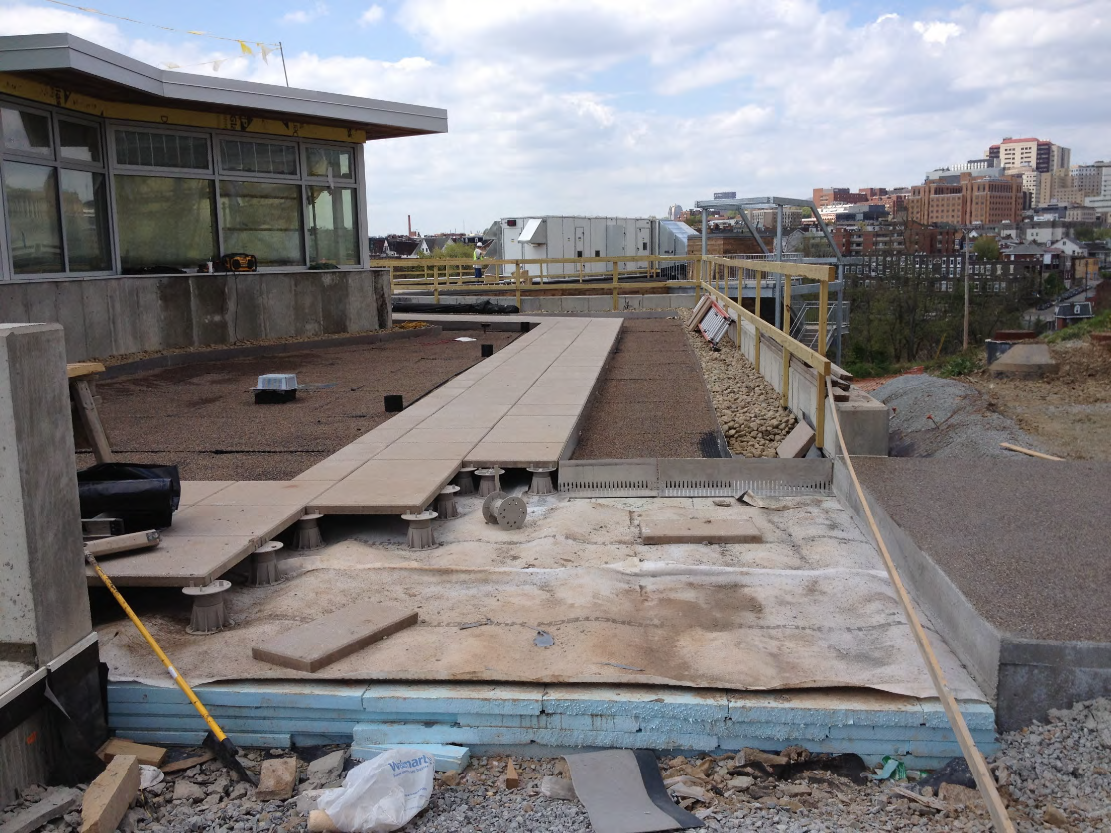 The construction of the green roof. All the layers under the actual plants can be seen here. Photo: Phipps Conservatory and Botanical Gardens