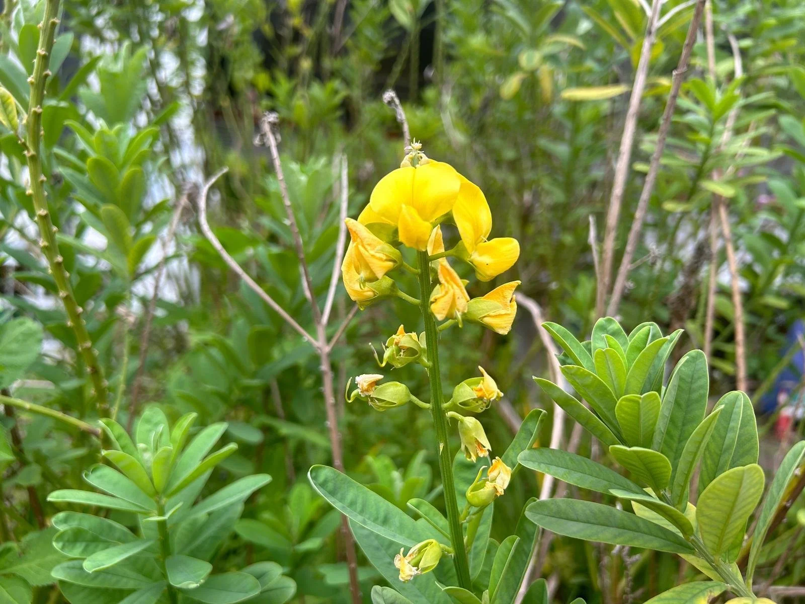 Crotalaria retusa is a low maintenance, flowering perennial plant used on green roofs in Singapore. Source: GWS