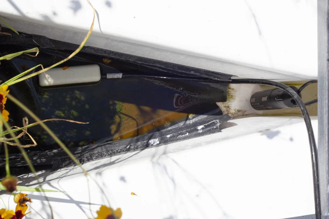 Water flumes (top) allow us to collect data on water flow and quality (sensors pictured above). (Photo: Maddy Salyer, Photojournalism major)