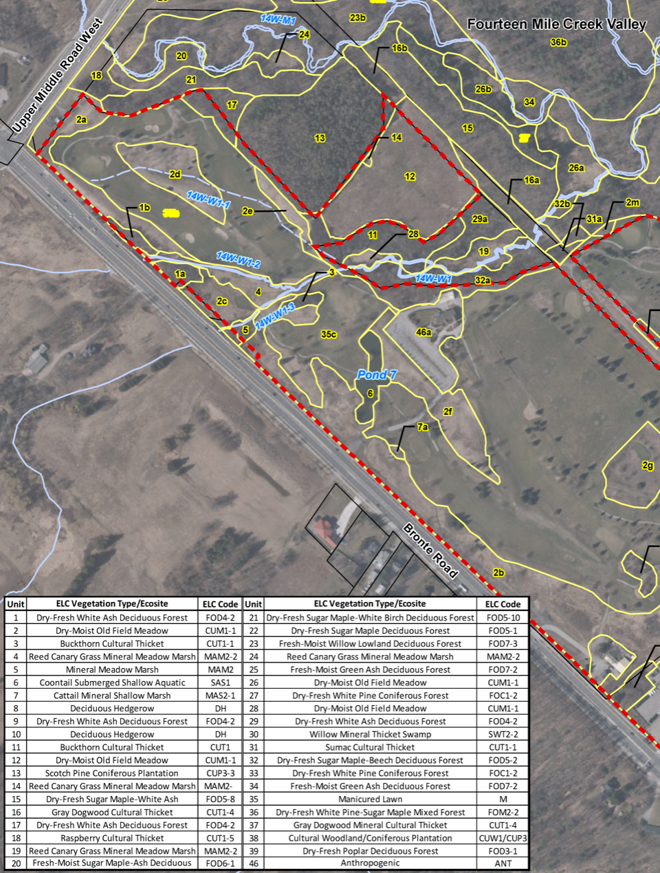 ELC describes ecosystems using geology, climate, vegetation, terrain and soil. It supports identifying natural systems and features in Ontario, including Significant Wildlife Habitat, Significant Woodlands, and Areas of Natural and Scientific Interest ELC provides tools and techniques for consistent description, identification, classification and mapping of community types. The ELC is now becoming a standard method across Ontario to meet the needs of ecosystem management and land use planning. This classification of the landscape enables planners, landscape architects, and ecologists to organize ecological information into logical integrated units to enable landscape planning and monitoring. The ELC mapping for the project area is illustrated on Figure 1.