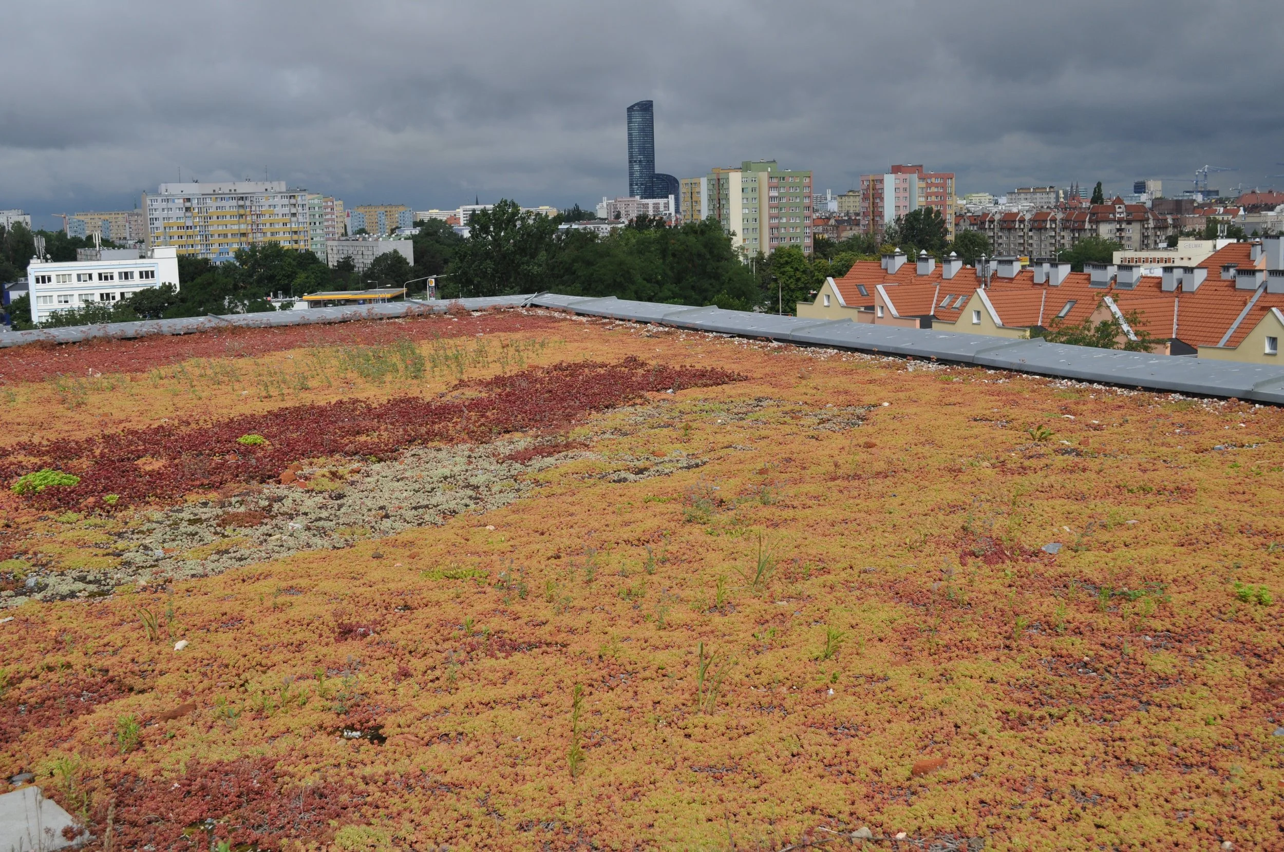Sedum roof covering multi-apartment building in Wrocław. photo: M. Weber-Siwirska