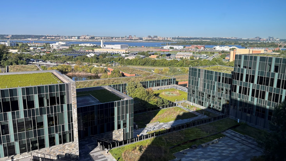 In efforts to help meet its high standard for sustainability, the GSA hired a diverse team to visualize a sustainable and integrated campus master plan. The result was 29 green roofs on an array of buildings, to meet goals for its LEED Gold certification. The re-visioning of the St. Elizabeth’s West campus to adapt to its new use as a consolidated headquarters for the Department of Homeland Security U.S. Coast Guard included a mix of new and revitalized buildings, with phase 1, the Douglas A. Munro Coast Guard Headquarters, now planted with about 12 acres (4.8 hectares) of green roofs, including several large meadow-based green roofs composed of native grasses, wildflowers, and small shrubs.