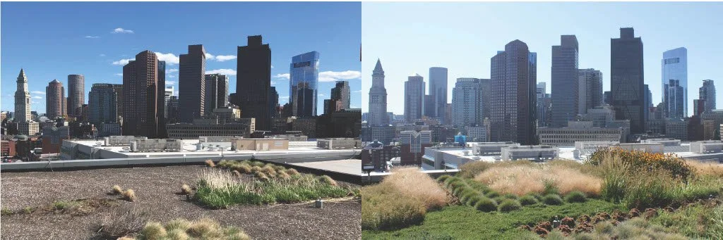 When renovating The Monty Boston—a contemporary hotel overlooking the historic Boston Common and Massachusetts State House—the owner was required to retain 1,200 cubic feet of stormwater on-site. Traditional underground detention would have cost more than $400,000 and disrupted building operations. Instead, the owner partnered with Roofterra, a green infrastructure consulting and construction management company, to explore a more efficient and purposeful approach. Almasi commented, “From a horticulture standpoint, managing stormwater at the roof level supports both plant health and system performance. Retaining water on the roof allows the landscape to actively use that moisture—reducing runoff while supporting healthier, more resilient plantings.”