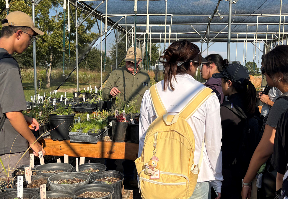 Preparing the next generation of professionals includes learning about how plants are grown in nurseries. Graduate students in landscape architecture at Texas A&M University learn how native plant seeds are collected at Indiangrass Preserve (Waller, Texas). Here, seeds are sprouted and repotted several times over growing seasons to produce mature plants for planting in a native garden on site. A similar process is used in nurseries to prepare quality plants for installation in landscapes and green roofs. Photo: Bruce Dvorak